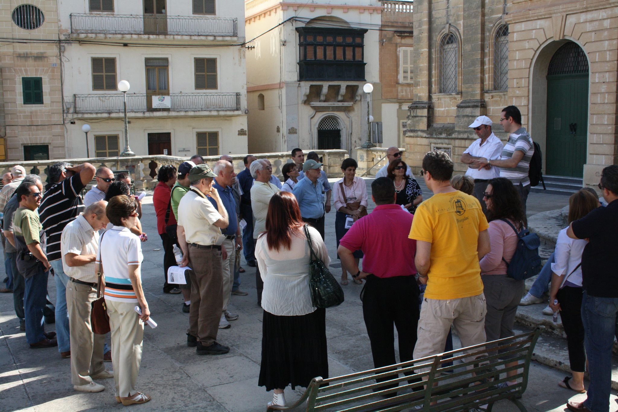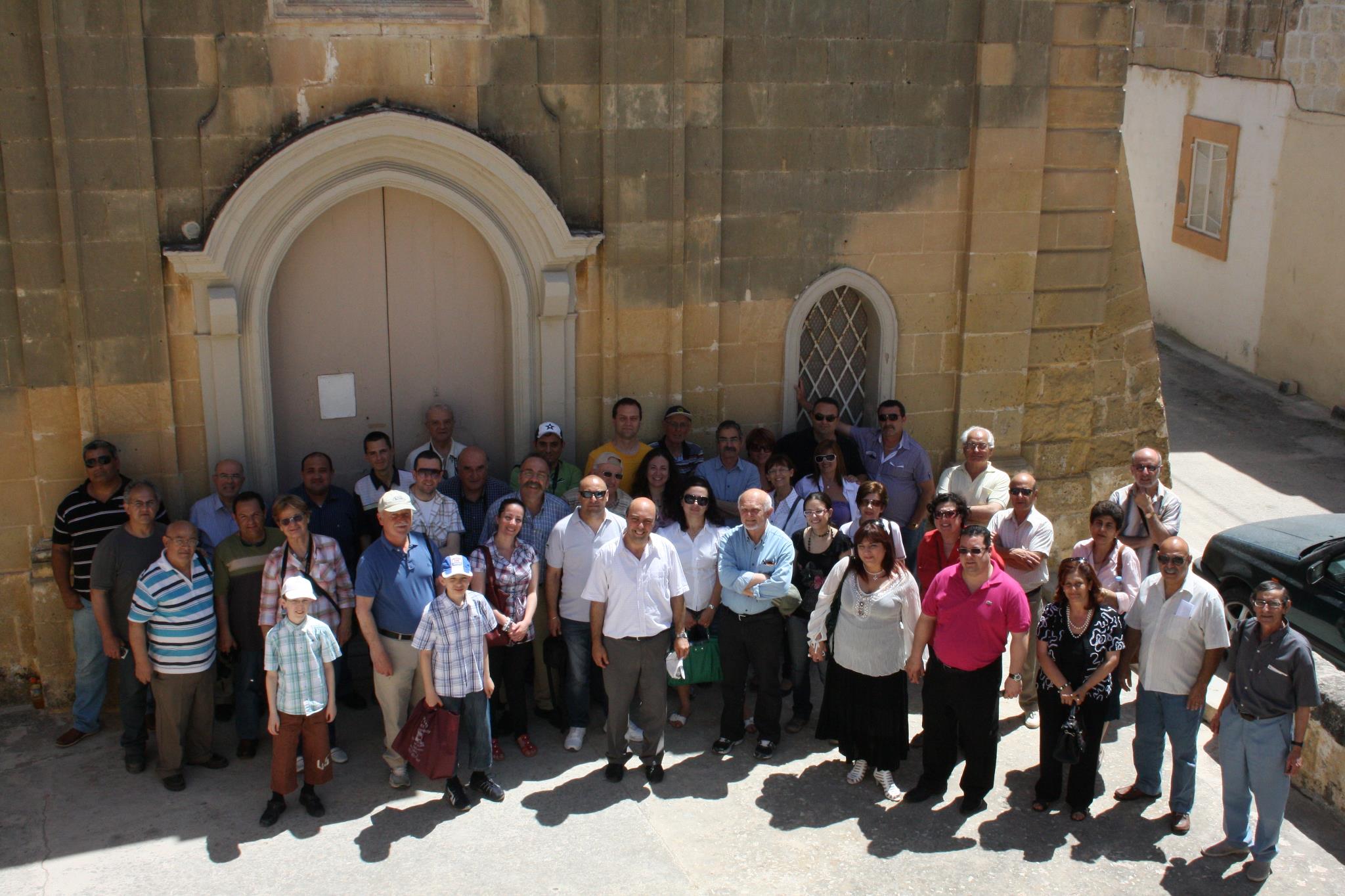 Members of the Għaqda Ħbieb tal-Kappelli Maltin were toured around by Wirt iż-Żejtun President, Ruben Abela. The group met in front of the Zejtun Parish Church and walk to Misraħ Carlo Diacono were the urban development of Zejtun was first explained to the participants. Then a brief historical overview about the two private chapels, that of Our Lady of Good Counsel and St Angelo, found in this square was given.