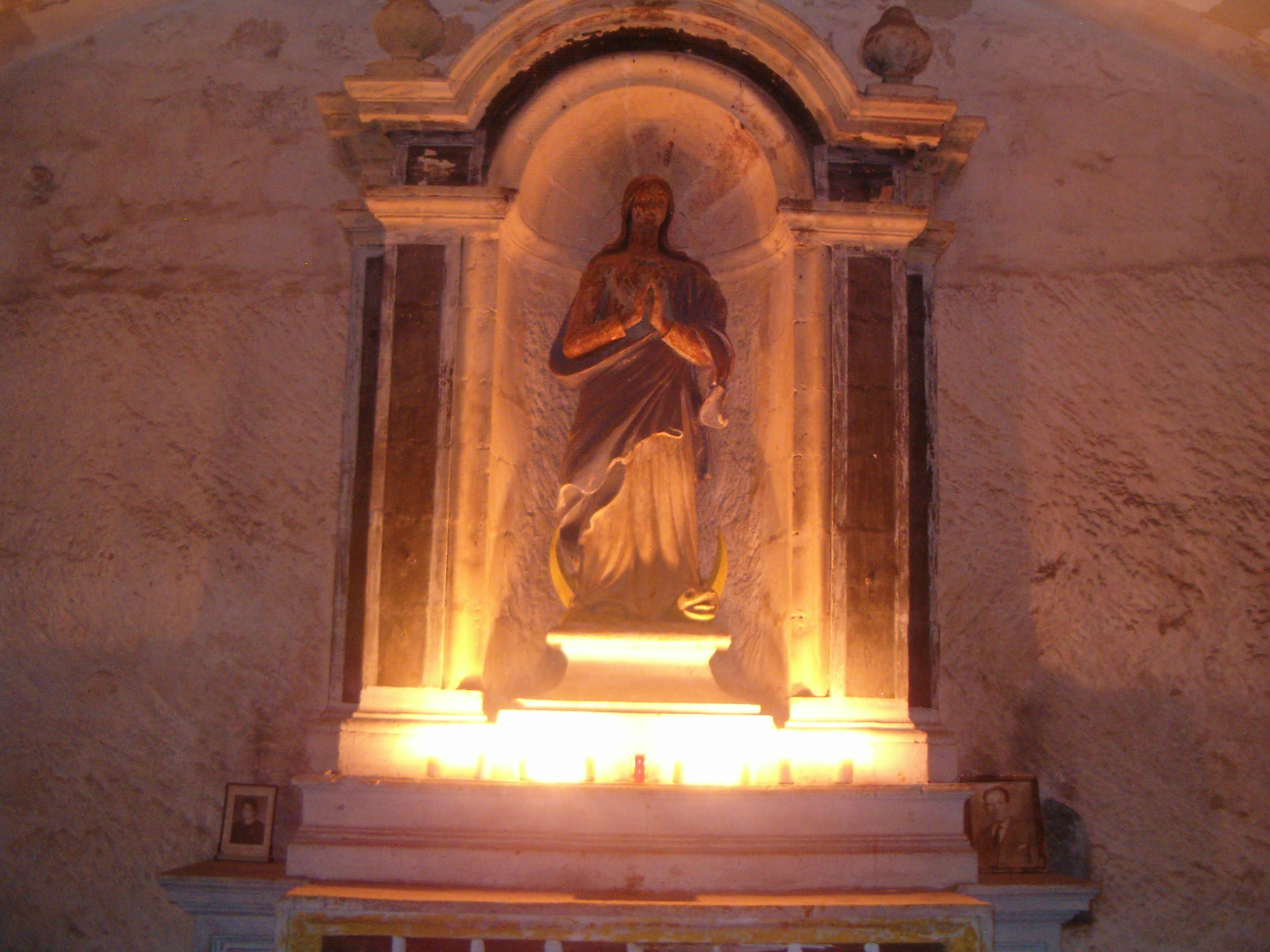 On the furthest end of the main crypt there is an altar with a stone statue of the Immaculate Conception placed in a niche, just over it. According to the historian Can Rev Joe Abela, this statue was originally placed by Fra Gabriel Cassar in the older church of St Mary located at ir-Raħal ta’ Fuq. Fra Cassar was the son of the Maltese architect Gerolimo Cassar.