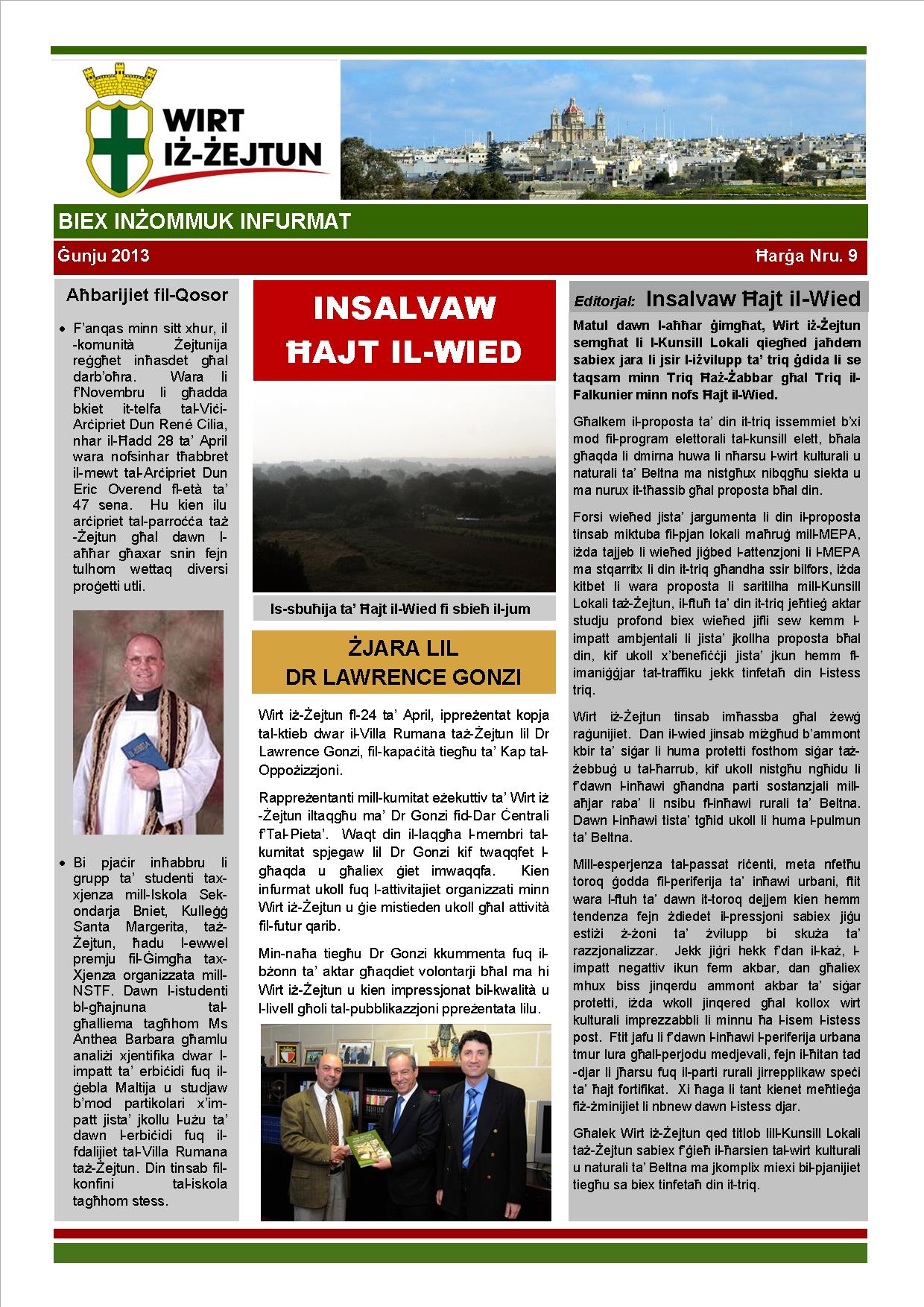 The ninth issue of Wirt iż-Żejtun newsletter “Biex Inżommuk Infurmat” has just been released.