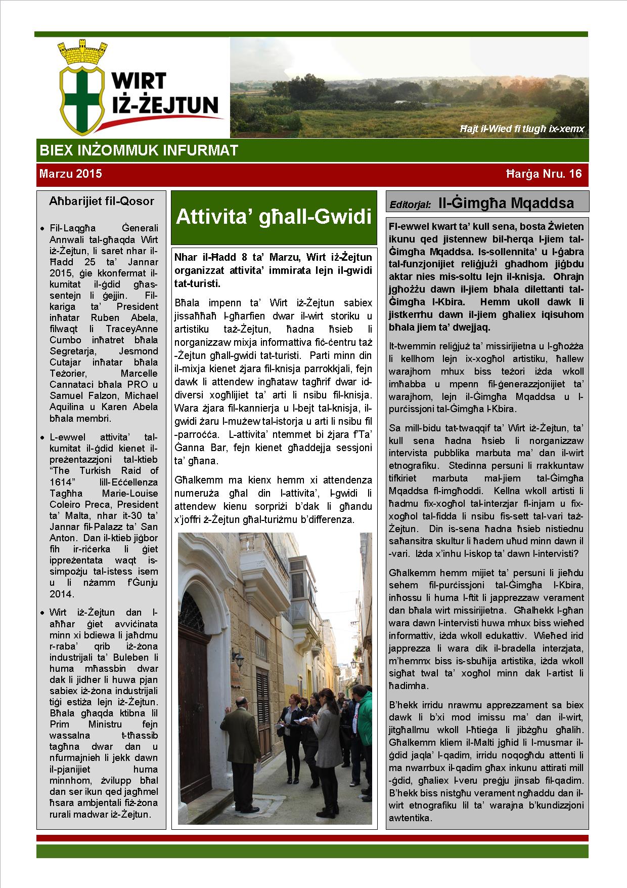 Issue No 16 of our Newsletter has just been issued. The newsletter is published only in Maltese version and can be read from here.