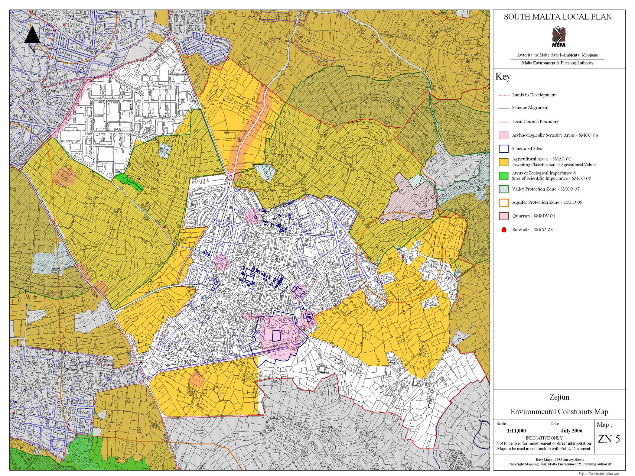 Wied iż-Żrinġ falls in part of the area which is being considered as part of the Buleben Industrial Estate extension. Notwithstanding this, the South Malta Local Plan environmental studies have identified this valley as an Area of Ecological Importance and Site of Scientific Importance. Moreover, all the surrounding agricultural land has been identified as a Valley Protection Zone. This is clearly shown on the “Zejtun Environmental Constraints Map” (Map ZN5 of the South Malta Local Plan approved in 2006.