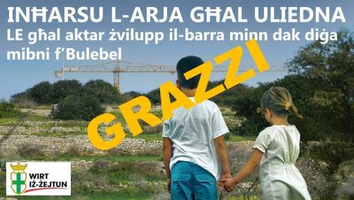 This was stated in a press statement issued earlier today under the heading  Goverment to ‘reverse’ Bulebel land scheduled for development in 2006.  Wirt iż-Żejtun looks forward to see the government objective issued and instructing the Planning Authority to formally revise the South Malta Local Plan development boundary to this effect.  We will be participating in the consultation process stipulated under the Development Planning Act.  Yesterday it was stated during the Parliamentary Committee for Environment and Planning meeting that such process will take about six months to conclude.