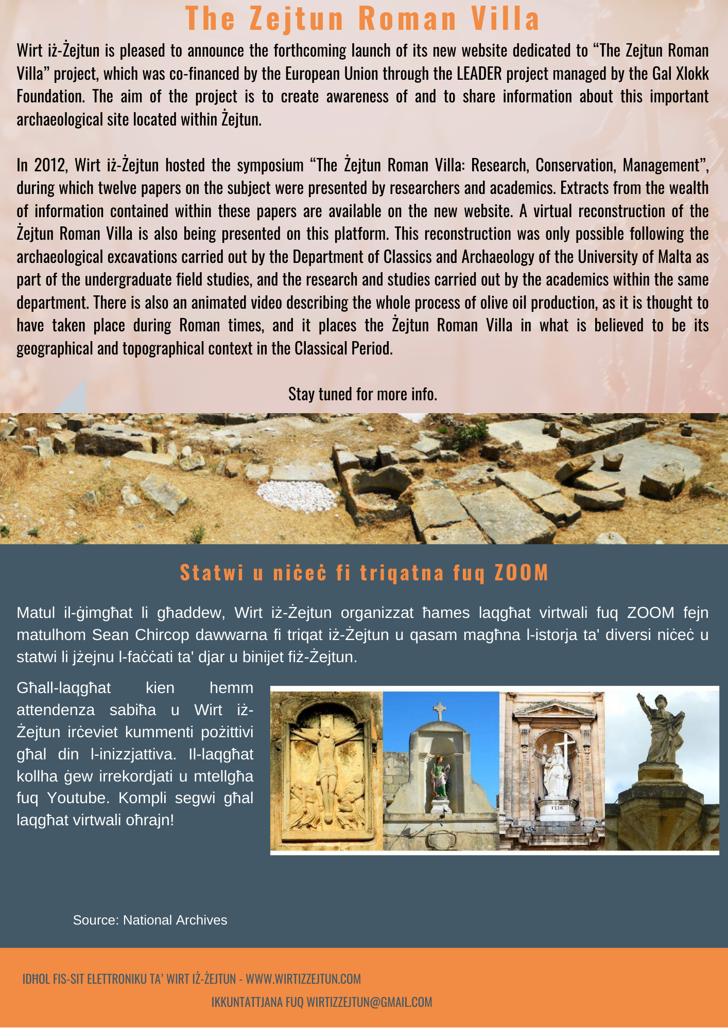 A presentation given by Ms Giulia Privitelli on the 19th November 2013 on her research about the history of the Zejtun Parish Church.