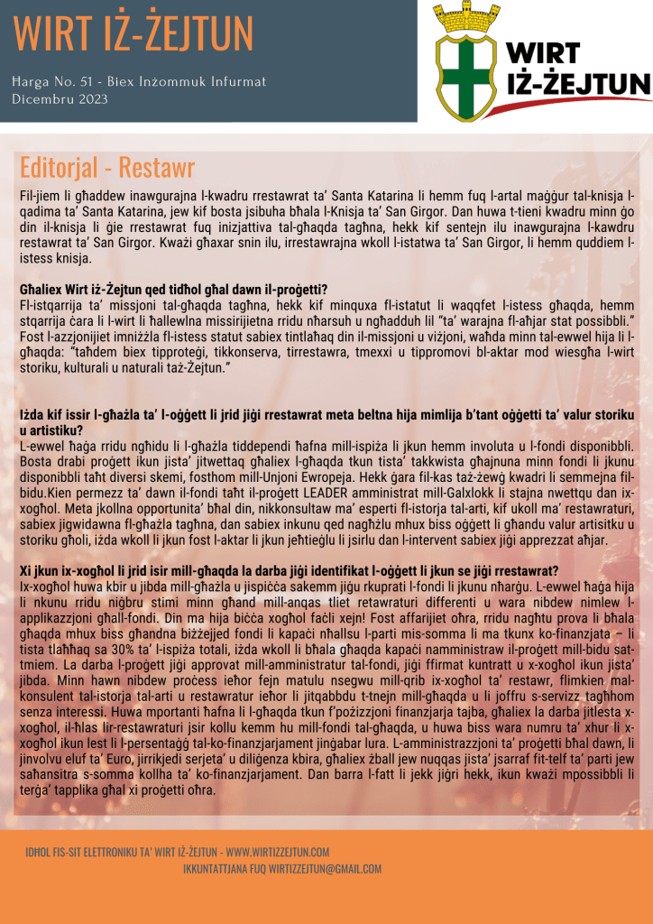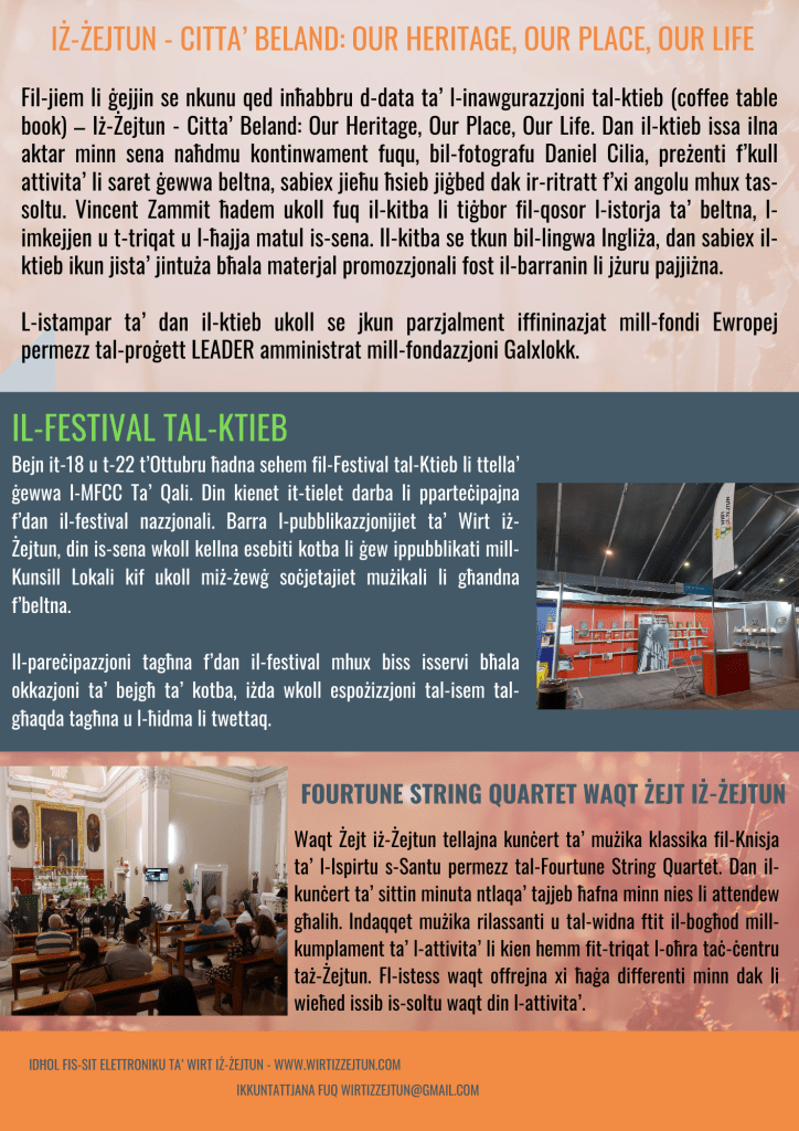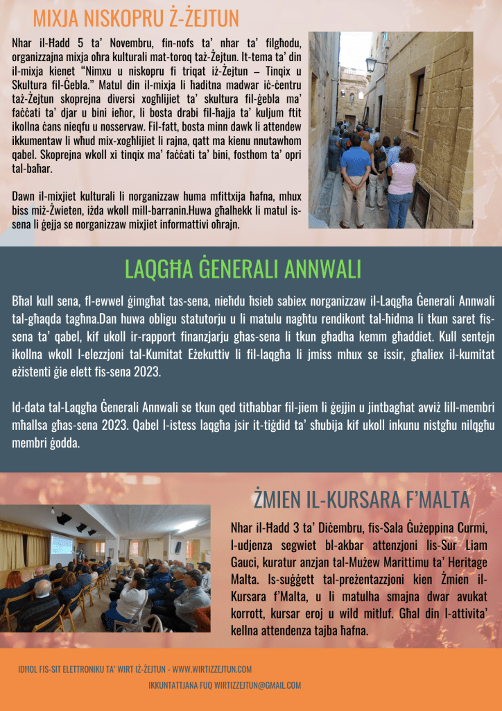 By participating actively in Wirt iż-Żejtun you will be learning more and adding to your knowledge. Now this is also being rewarded since you can add such experience into the Secondary School Certificate and Profile. Wirt iż-Żejtun will be giving a participation certificate to Form 1 to Form 5 students attending our activities.
