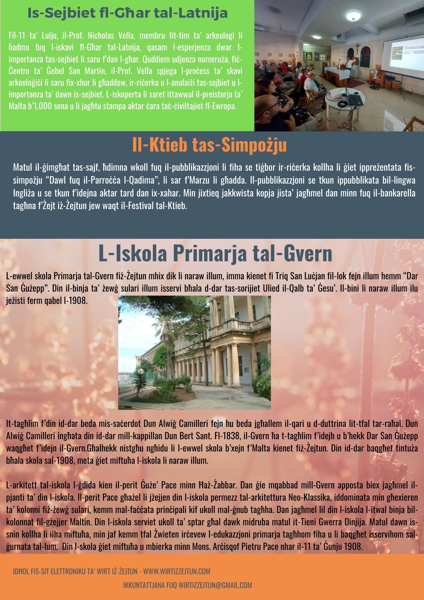 By participating actively in Wirt iż-Żejtun you will be learning more and adding to your knowledge. Now this is also being rewarded since you can add such experience into the Secondary School Certificate and Profile. Wirt iż-Żejtun will be giving a participation certificate to Form 1 to Form 5 students attending our activities.