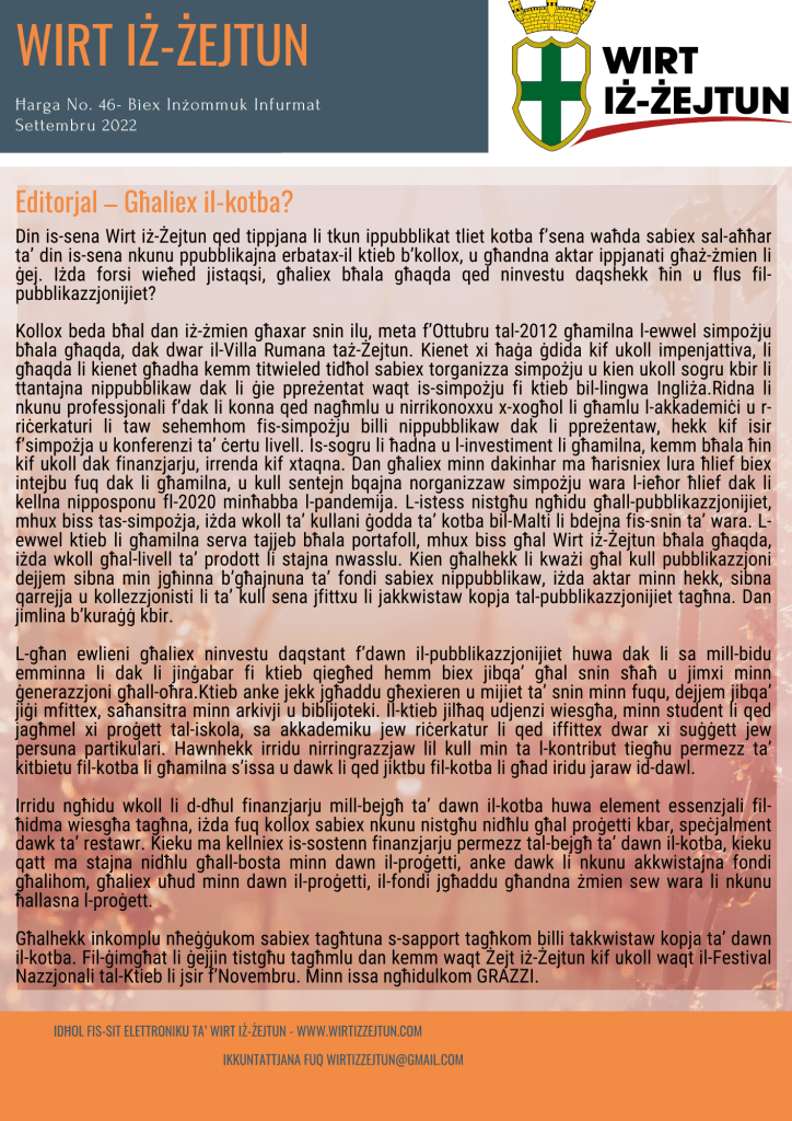 By participating actively in Wirt iż-Żejtun you will be learning more and adding to your knowledge. Now this is also being rewarded since you can add such experience into the Secondary School Certificate and Profile. Wirt iż-Żejtun will be giving a participation certificate to Form 1 to Form 5 students attending our activities.