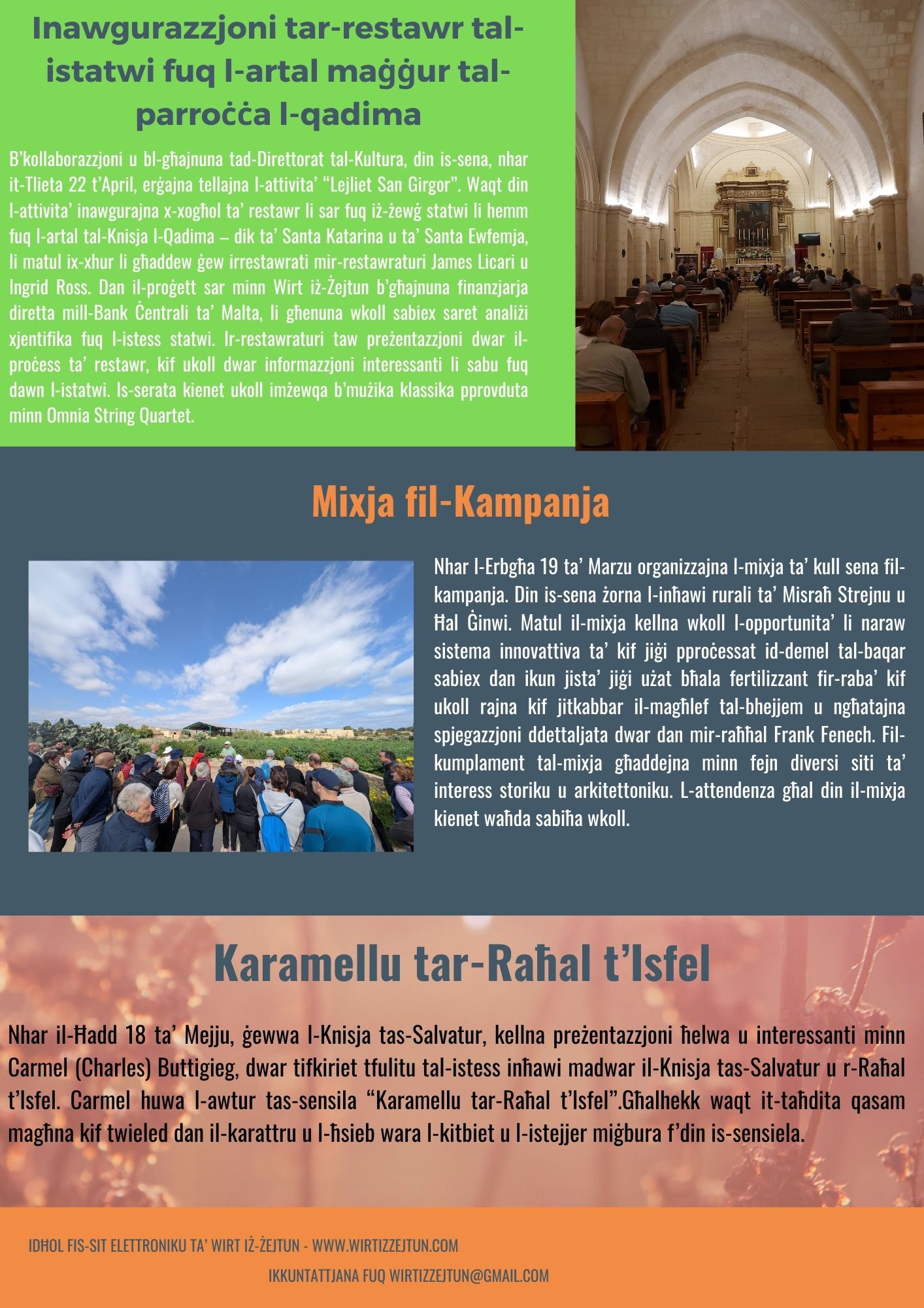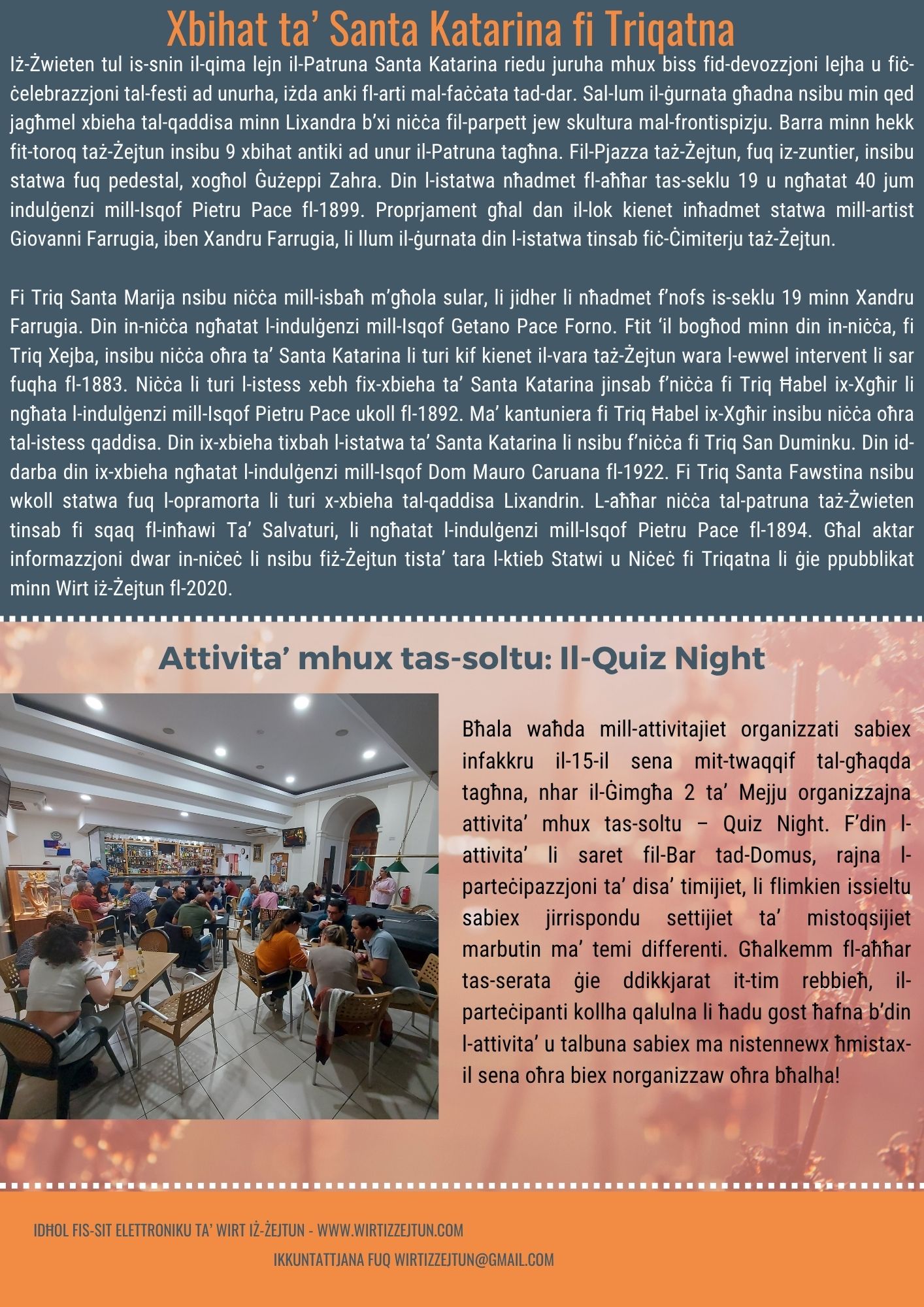 By participating actively in Wirt iż-Żejtun you will be learning more and adding to your knowledge. Now this is also being rewarded since you can add such experience into the Secondary School Certificate and Profile. Wirt iż-Żejtun will be giving a participation certificate to Form 1 to Form 5 students attending our activities.