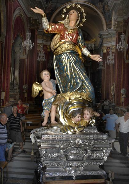 Among the works carved by Xandru one should mention the titular processional statues of the Annunciation at Tarxien (1829), St. Mary at Mqabba (1837) and St. Paul at Safi (1844).